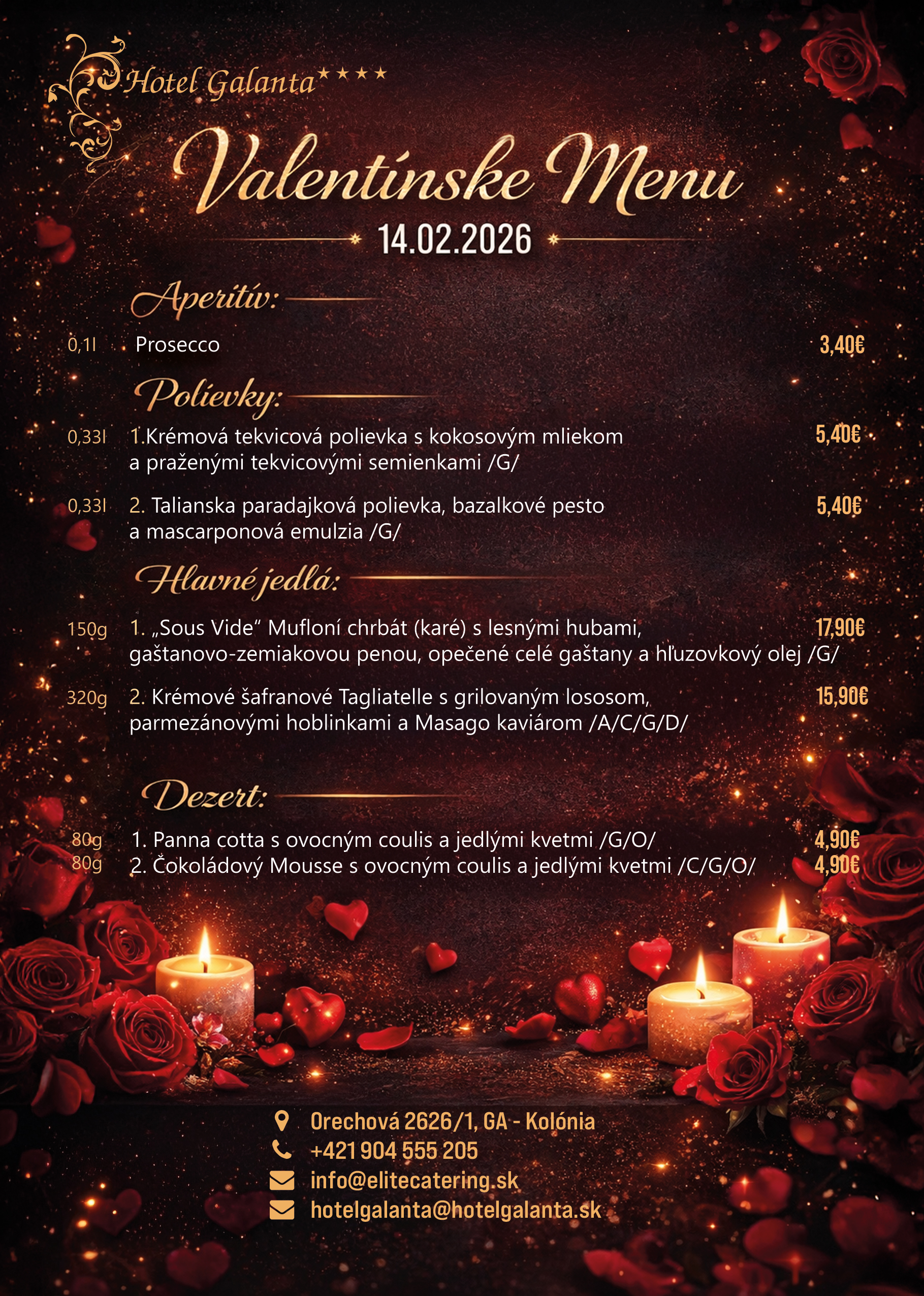 Valentine’s Day menu